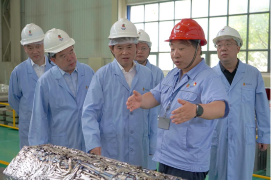 王勇一行在坯料廠熔煉車間進(jìn)行實(shí)地調(diào)研,詳細(xì)了解了公司產(chǎn)業(yè)布局、企業(yè)經(jīng)營(yíng)效益、技術(shù)研發(fā)、產(chǎn)品工藝流程等情況,對(duì)公司核級(jí)鋯材國(guó)產(chǎn)化、自主化發(fā)揮的重要作用給予充分肯定。王勇表示,國(guó)核鋯業(yè)作為擁有中國(guó)首條完整核級(jí)鋯材產(chǎn)業(yè)鏈的企業(yè),承擔(dān)著實(shí)現(xiàn)我國(guó)核級(jí)鋯材國(guó)產(chǎn)化、自主化的重要使命,填補(bǔ)了我國(guó)核級(jí)鋯材產(chǎn)業(yè)空白,解決了核級(jí)鋯材全部依賴進(jìn)口的被動(dòng)局面。希望在后續(xù)發(fā)展中,國(guó)核鋯業(yè)能夠立足資源稟賦與產(chǎn)業(yè)特色,注重品質(zhì)、貼近市場(chǎng),進(jìn)一步深挖發(fā)展?jié)摿Γ嘤鲩L(zhǎng)動(dòng)能,實(shí)現(xiàn)企業(yè)的穩(wěn)健發(fā)展。